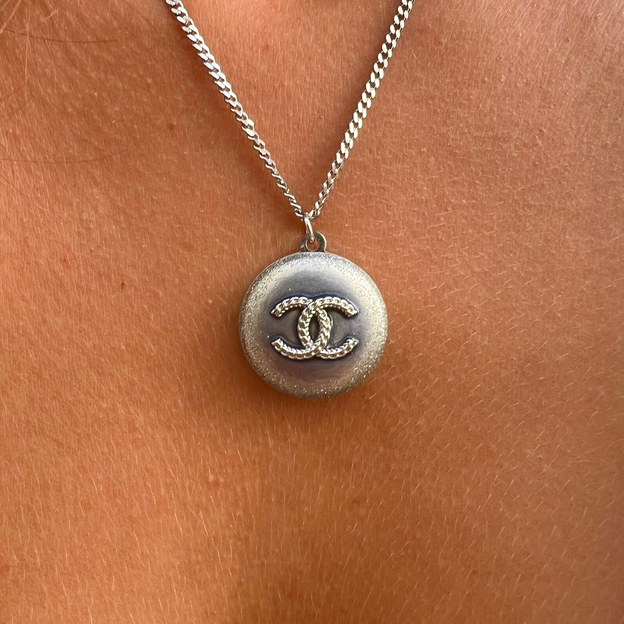 Collier upcyclé Chanel argenté pailletté